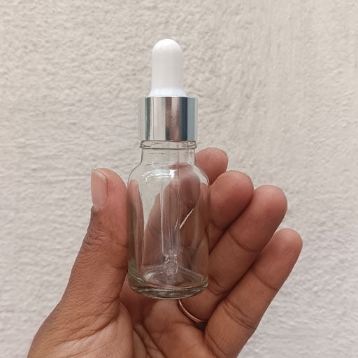 30 ml Clear Glass Dropper Silver With White Teat